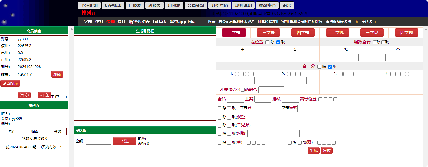 【独家二开】带打印功能海南幸运五分彩海南五星彩可加彩种七星彩带wap手...¥8000.00